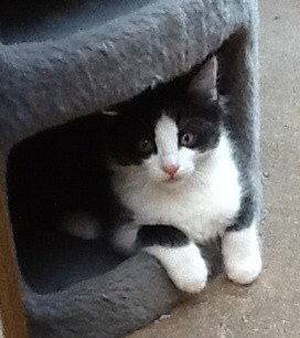 Winky is a playful kitten who likes cat caves and climbing poles.
