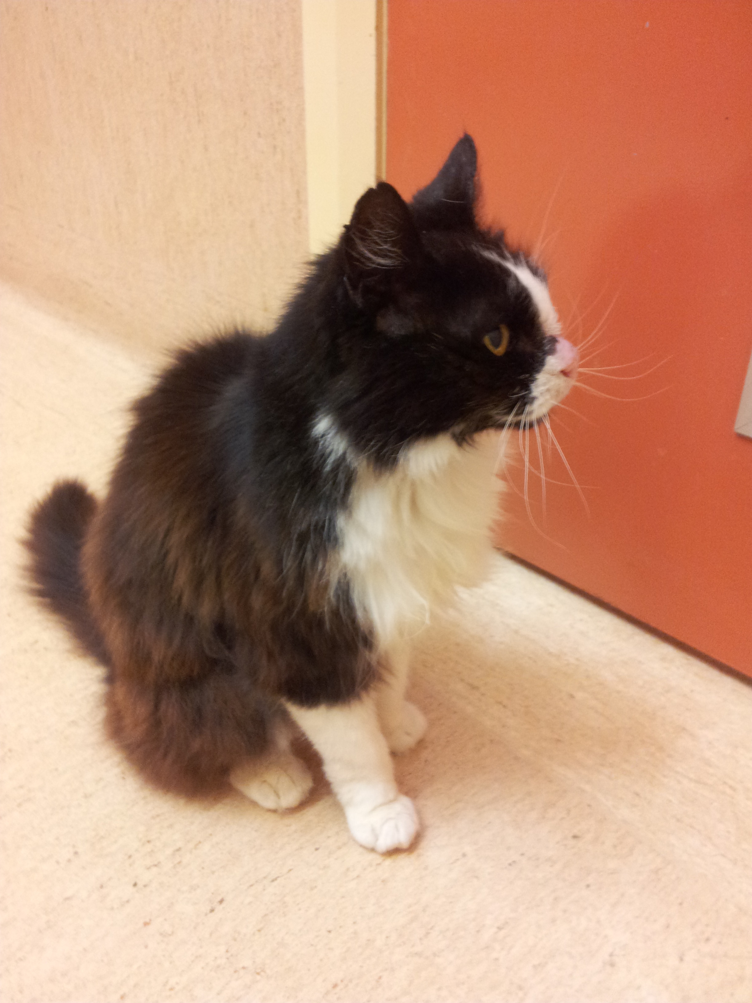 Old Lady has an odd appearance to her nose, which has been examined by the vets and does not appear to be causing her any issues at the moment, but could require testing further down the track if changes occur. Due to her pink nose Old Lady needs to be an indoor only cat to keep her away from the effects of the sun.