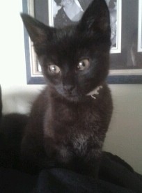Nelson is about 12 weeks old and is black with a little white under his chin. He is a happy go lucky kitten that loves to play with his siblings and have cuddles with you. Nelson is great with cat/kittens and is fine with dogs.