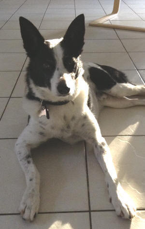 Spike is looking for an active individual or family as his owner has had to move overseas and would suit someone who has time to take him out for a daily walk or to play games in a backyard. Spike would also suit a home where he is the only pet as he has had limited contact with other dogs and small animals. Currently Spike is living with a retired and frail couple who are having difficulty coping with his energy and who feel guilty that they cannot give him the active lifestyle and stimulation that the working dog breed needs. Spike has a happy personality and is obedient. He can sit and stay until he is told to be 'free' and has the potential to be trained and to learn new tricks. For instance, he already knows how to shake hands, catch food, high five and bark on command. Spike is also house trained and sleeps inside with his current owners. Spike loves to run around and play games and his favourite one is to chase a tennis ball and return it to be thrown again ... sometimes, he can even catch the ball 'on the fly' ! Spike enjoys pats by his owner, is friendly when meeting new people and is gentle with younger children.