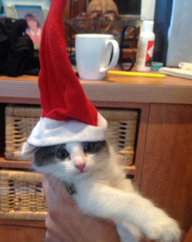 Indigo- aka Dora the explorer! Indigo was our "first" kitten. The first to use the litter,the first to eat solids,the first to explore. She is sweet and gentle. Not really interested in the rough and tumble like her brothers. Loves to climb,especially up the christmas tree! Cautious but very curious! Loves to sleep in laundry baskets on top of all the clothes. Has the sweetest little face and is happy to cuddle . She is a perfect bundle of fluff.
