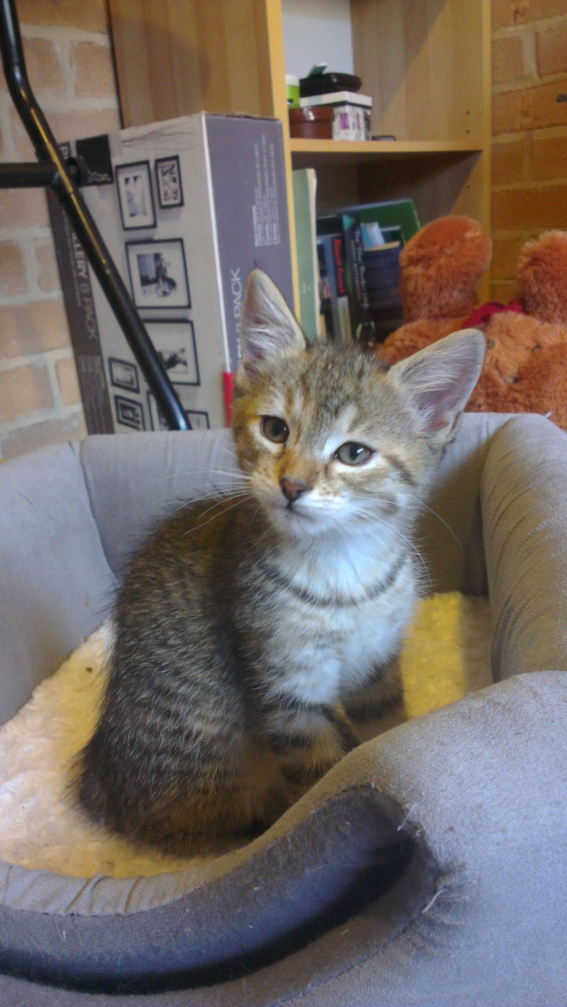 Ava is a brown tabby with beautiful ginger flecks and a ginger and white face. She was born in care with her brothers and sisters.