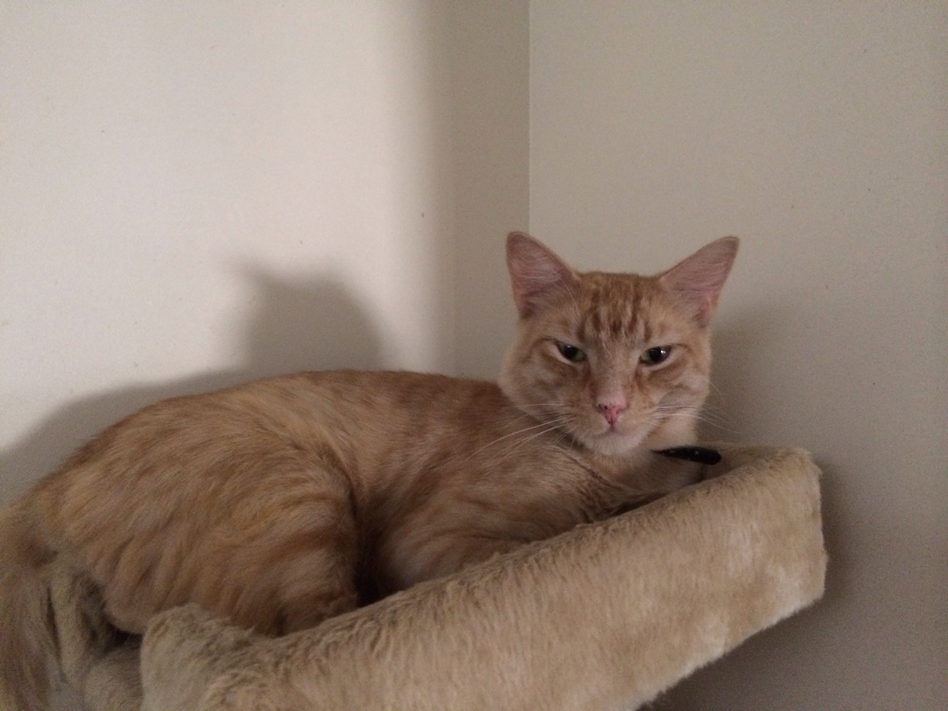 Ginger is a big affectionate boy. If you like big ginger kitties then he is your man. Ginger loves nothing more than to cuddle on your lap or snuggle you in bed. He gets along well with other cats and dogs. He is a true gentle giant.