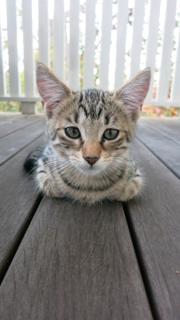 Freya is a female domestic shorthair kitten with brown tabby fur with striking black tiger markings and the cutest smallest little face and eyes. From a litter of 4 she grew up with busy family life and all four kittens are extremely relaxed and chilled! Happy to be carried around, sit on your lap for pats or curl up next to you for naps. Great with children and other cats these kittens are very playful and would make a great addition to any family. Freya has been an indoor cat all her life, therefore she is great using her litter box but lacks street smarts. All four have the most beautiful laid back personalities ready to share lots of love with their forever homes! Freya is desexed and microchipped. If you are interested in meeting this playful little girl please contact her foster mum Lara on 0431 946 643 or larajt777@gmail.com. She is located in Tarragindi.