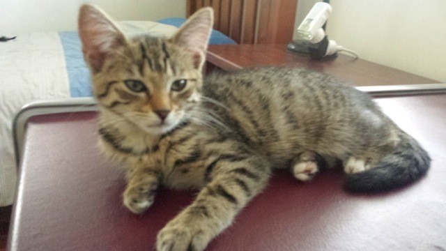 Lota is a female domestic shorthair kitten with brown tabby fur with striking black tiger markings with a white chin, tummy and two white hind paw socks. From a litter of 4 she grew up with busy family life and all four kittens are extremely relaxed and chilled! Happy to be carried around, sit on your lap for pats or curl up next to you for naps. Great with children and other cats these kittens are very playful and would make a great addition to any family. Lota has been an indoor cat all her life, therefore she is great using her litter box but lacks street smarts. All four have the most beautiful laid back personalities ready to share lots of love with their forever homes! Lota is desexed and microchipped. If you are interested in meeting this playful little girl please contact her foster mum Lara on 0431 946 643 or larajt777@gmail.com. She is located in Tarragindi.