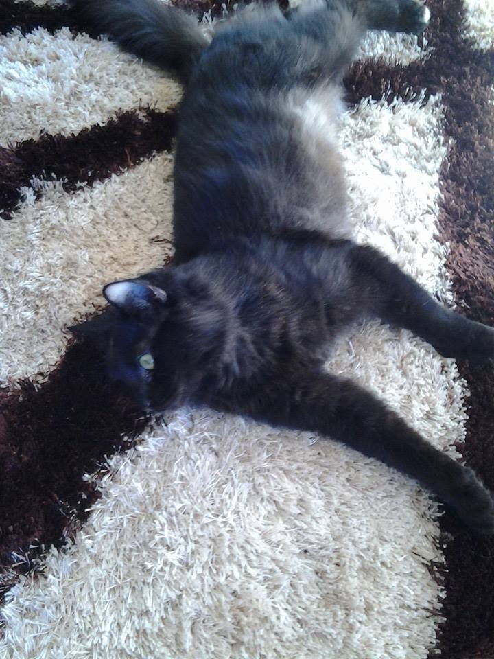Bella is a very sweet sook who likes being an indoor cat but also likes to explore. She is very striking! At first you think she is a black cat but then you see amazing greys, silvers and even ginger splashes on her. She is by far a glamour puss!