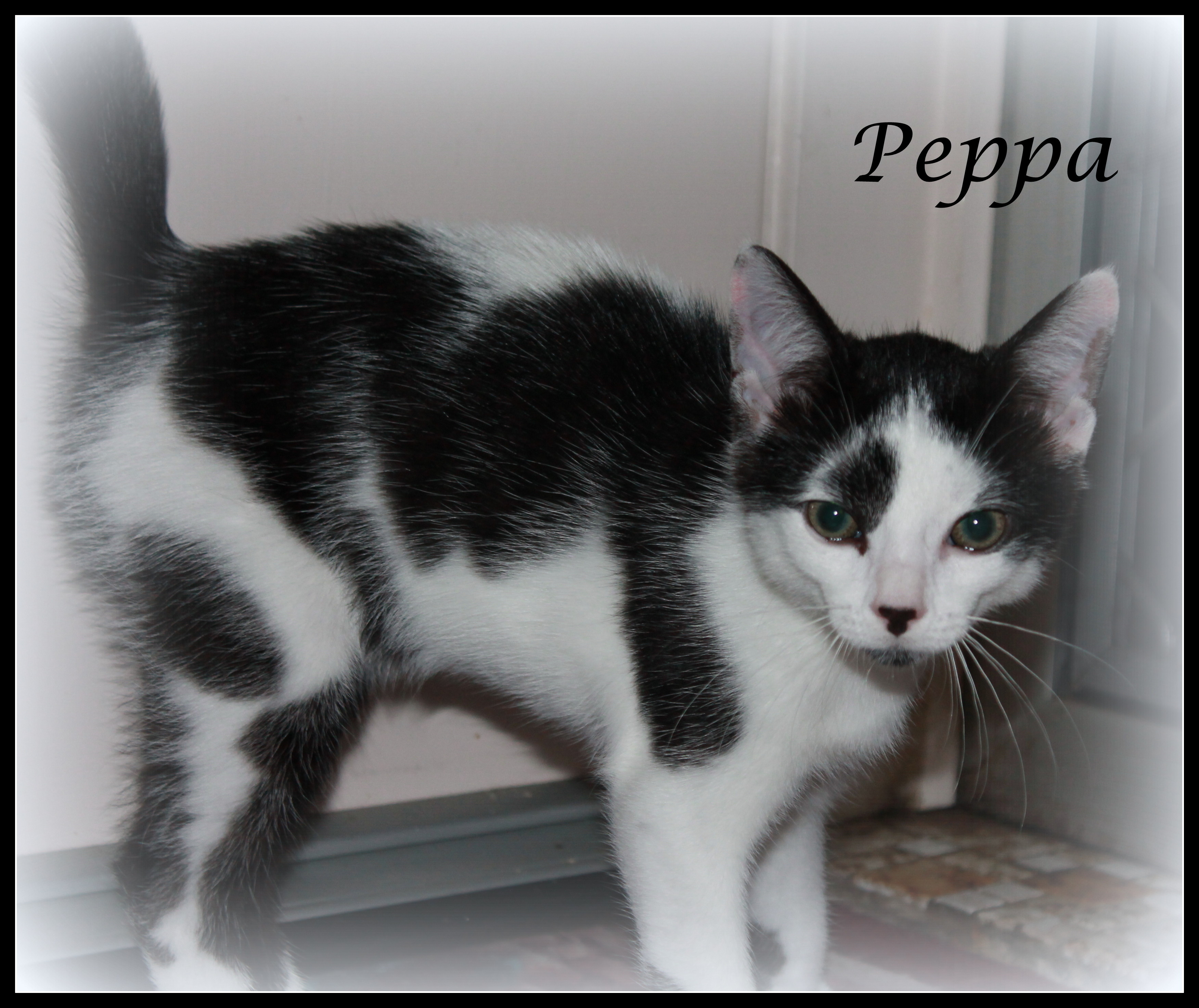 Peppa is a friendly, fun loving kitten who gets on well with other cats. He comes from a littler of two, his brother is George.