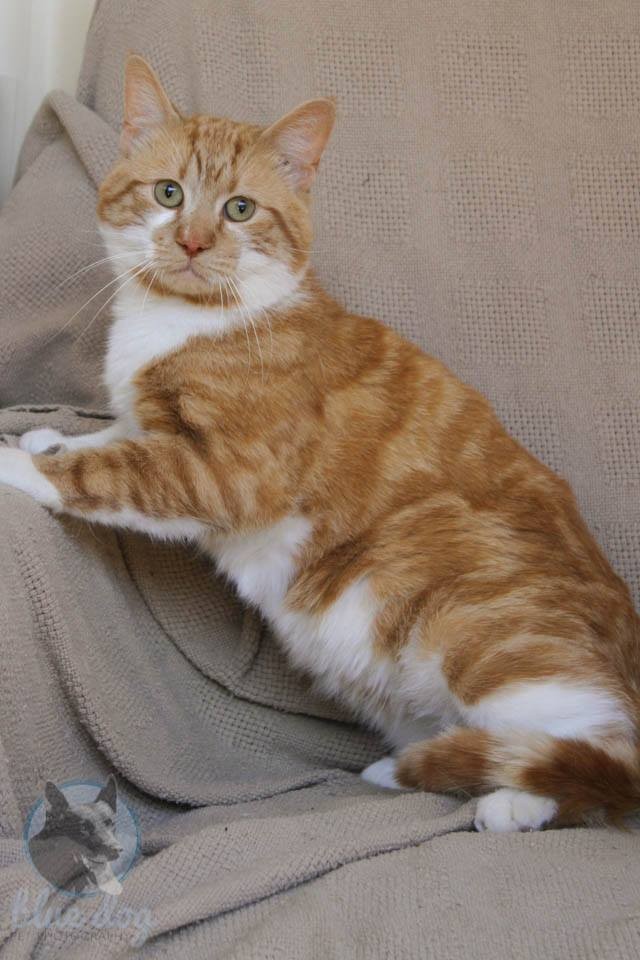 Treadley (C963) is a male domestic short haired ginger and white cat that is approximately 2 years old. Treadley got his name from always 'marking time' or treading on you when he is being cuddled