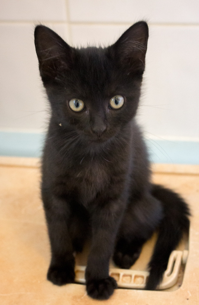 He is a very playful and inquisitive little boy with a pure black coat. Dean loves to play with his brother and sister but also loves attention from people and will purr away contently when you pat him.