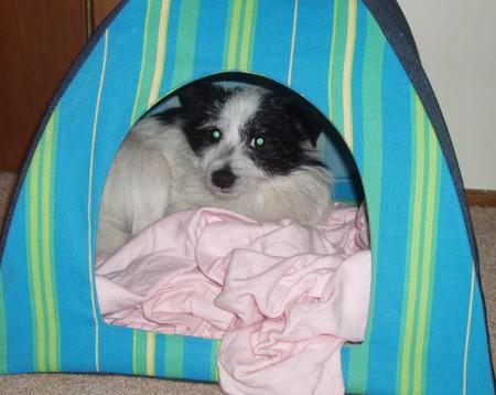 **whistler will be trying out his new home soon** whistler is a happy, lively little boy that just loves to have fun! he is brilliant with other dogs, big or small, and also seems fine with cats. Whistler loves to play, and is very ball focused, so he would really like to try flyball one day. He loves to be told that he is a good boy, and responds very well to positive training. Whistler's favourite things to do are going for walks, playing fetch with the ball, playing chasey all around the house with his doggy friends, and the funniest game of all - playing hide and seek - where whistler hides under the couch and snorts and squeaks until the other dog squeezes under the couch too and joins in with the funny noises. And he has a very special trait - one ear up and one ear down!