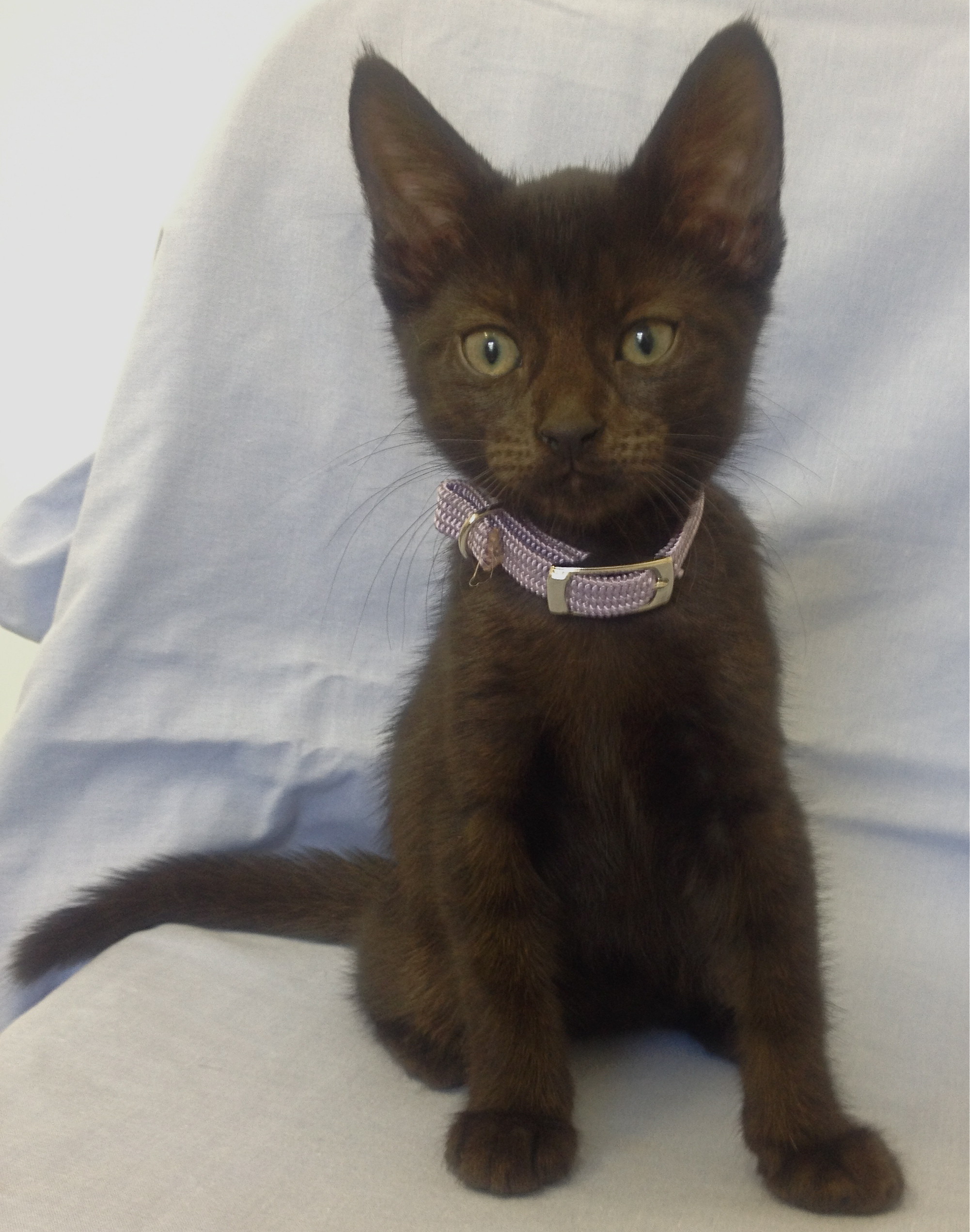Meet Nina. She is 8 weeks old and such a sweetie. Nina has a black coat that is also smoky brown that is so unusual. She is a very sweet little kitten that loves to cuddle and play.