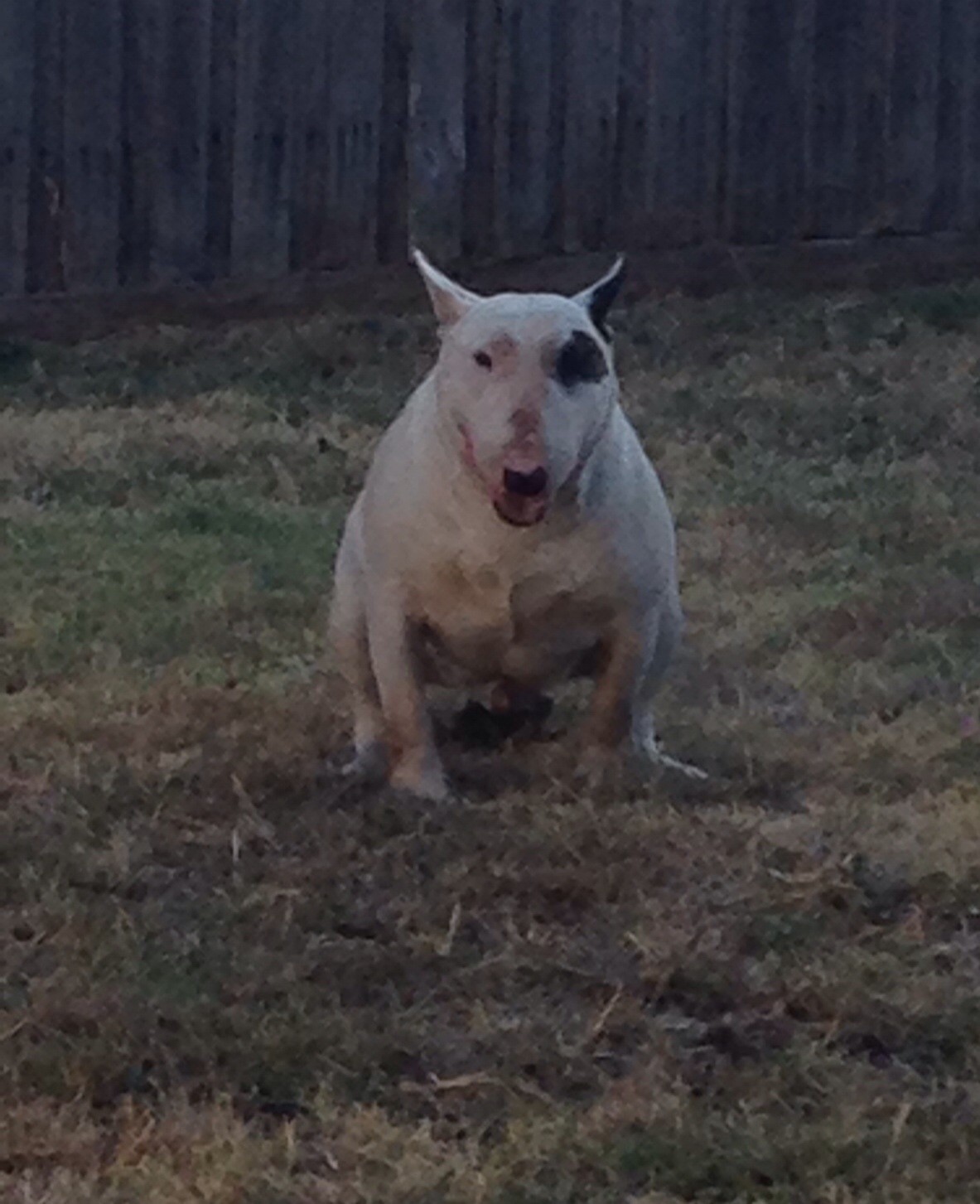 Diesel has won a couple of ribbons when he was younger and is a fully papered bull terrier. When Diesel isn't eating or sleeping he is doing bully runs around the yard.
