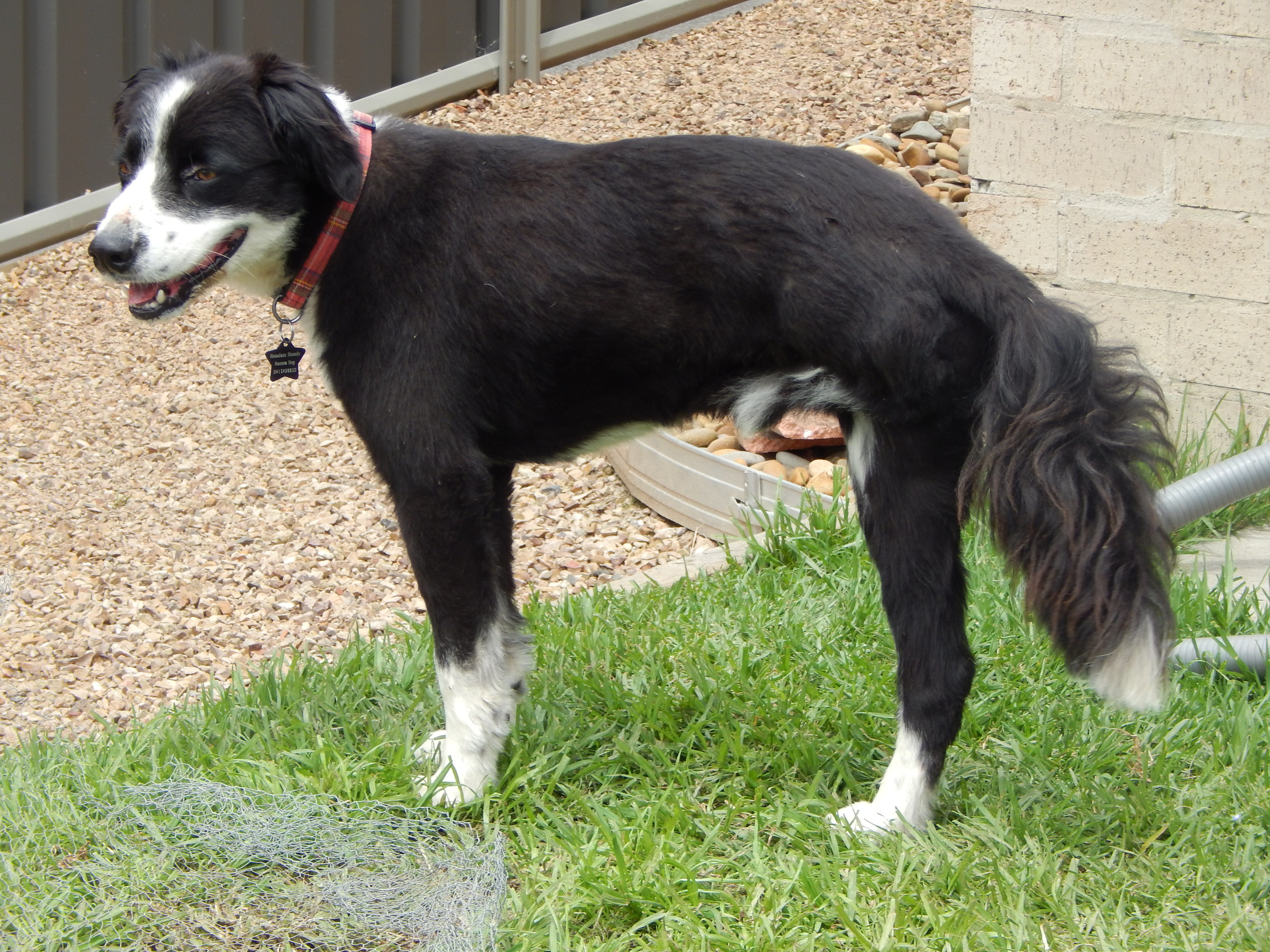 Jed is a lovely natured dog, he does like the company of dogs but can be a little bossy, he did grow up with a little fluff ball and they got along very well. Jed came from a farm environment although now is in foster care in suburbia and is doing very well. Jed had an accident a few years ago and lost one of his legs, it got caught in a drip feed but it certainly does not stop him doing anything at all. Jed is housetrained and loves being inside with you and loves going for lots of walks or runs, he is great off lead.