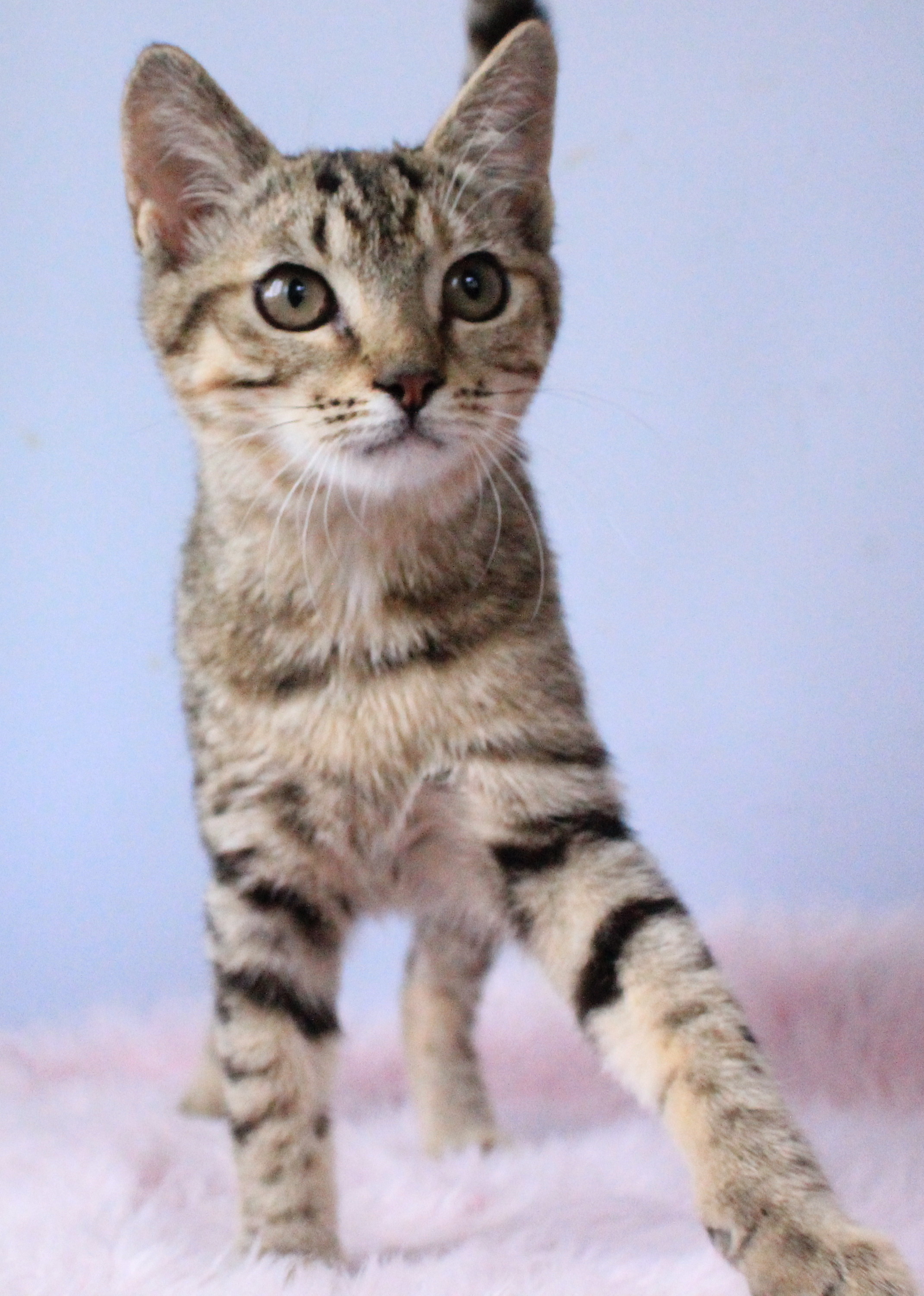 Tabatha is so beautiful with her great big eyes and lovely tabby coat with orange spots through it. She is a soft natured girl who is very sweet. She is very undemanding and just happy to be with you when you are available. She gets on well with other cats and dogs, just like most of our kittens and will make a wonderful companion for the person lucky enough to adopt her.