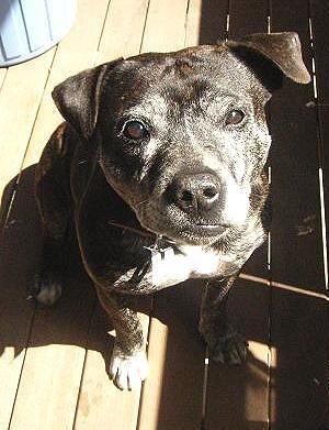 Buster is a senior pure bred staffy. He has travelled to a few homes in his life and is now looking to spend his twilight years with a family who will love him as much as he will love them. He is around twelve years old, but is still extremely fit and muscular, with endless energy and exuberance. I'm sure he's got many good years left in him to share with someone who needs a canine light in their life. He is very friendly, loves to play with kids and is good with other dogs, preferably around the same size as him. The best thing about buster is that the sun's always shining in his world. He is the happiest animal i have ever met - always smiling, delighted to play with anyone. Buster will definitely need 6 foot high secure fencing. Buster comes desexed, microchipped, wormed, flea treated, vet checked, c5 vaccinated and heartworm checked (age applicable) for an adoption fee of $250
