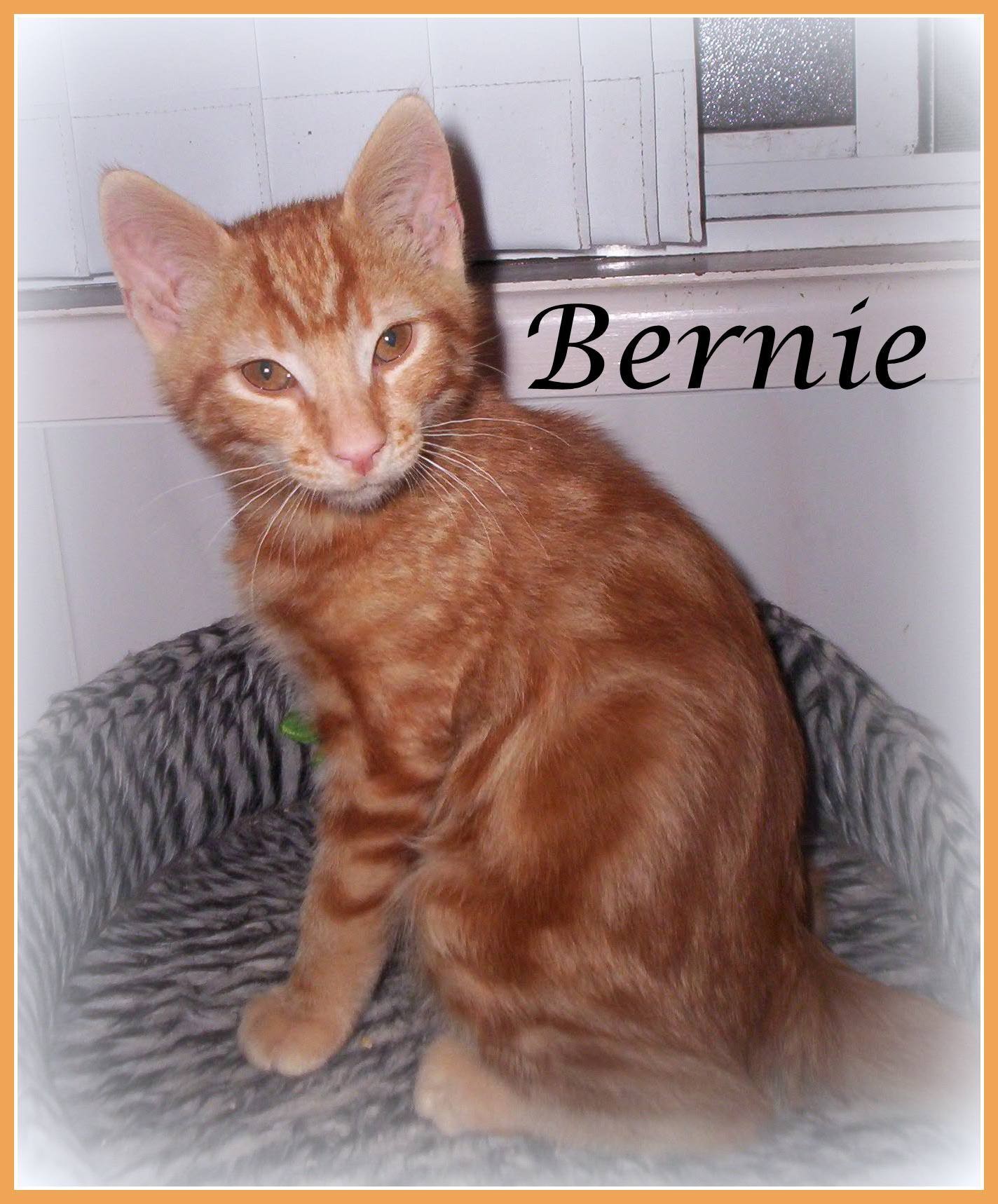 Bernie is a playful and outgoing little ginger boy who loves to play with his feline friends and just enjoy being a kitten without a worry in the world.