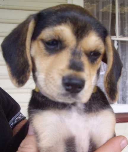 Georgia is a happy, playful loving little girl who enjoys her food and loves to play outside. We are not sure what Dad was as Georgia's mum, Sugar (pic included) came from a country pound but we are thinking probably a Kelpie? Georgia is the only Tan pup in the litter but still has the Beagle ears!. Information on the web about Beagles says: Small, compact, and hardy, Beagles are active companions for kids and adults alike. Canines in this dog breed are merry and fun loving, but being hounds, they can also be stubborn and require patient, creative training techniques. Their noses guide them through life, and they're never happier than when following an interesting scent."