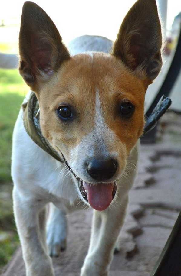 Bright, lively, happy guy with bundles of appeal, cuteness and personality. Skip will "mouth" you to get attention and is slowly learning that this is not acceptable. He is OK with other dogs and loves to wrestle and play. He sleeps outside and is not a fussy eater. Skip is like a cattle dog in colour and size although he looks more like a foxie around his head area. Skip loves to run and jump and is active and bright. He had huge ears when he first came in, a bit like a joey kangaroo - hence his name. A great tradie's dog, or full time companion, Skip is located in south-western NSW.