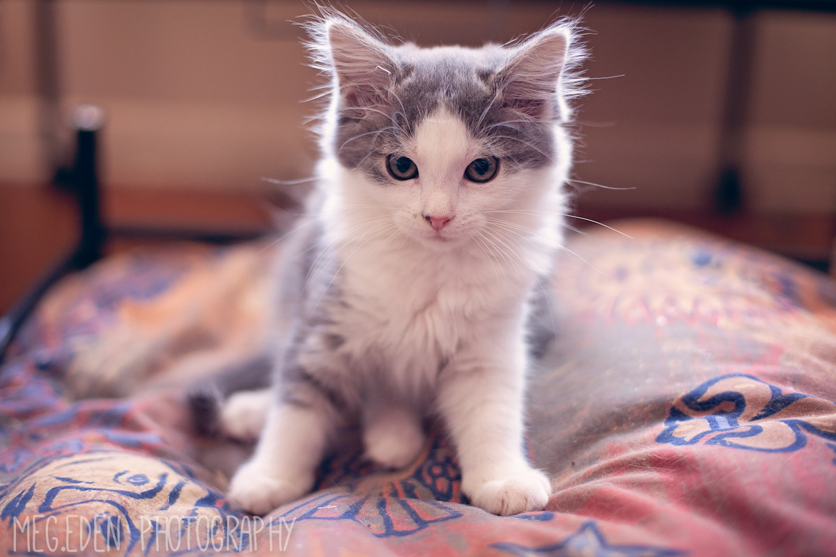 Beautiful little grey and white girl, loves people and is very gentle. She will follow you around and wants to know what you are doing and be part of it, she has also lived and gotten along with big dogs and rabbits.