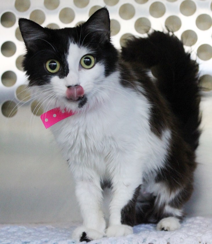Full name: Peggy Puddle Paw. This lovely lady is very sweet natured and friendly. Peggy has lived with other cats before and is also fine with medium sized dogs if they are introduced in the right way. She would love to be an indoor cat with plenty of windows to claim as she loves sitting and watching the world. Peggy likes to be wherever you are and enjoys human company very much she even needs to supervise bath or shower time! Peggy would be happy to live with some older children and is quite playful so she will need lots of toys to play with.