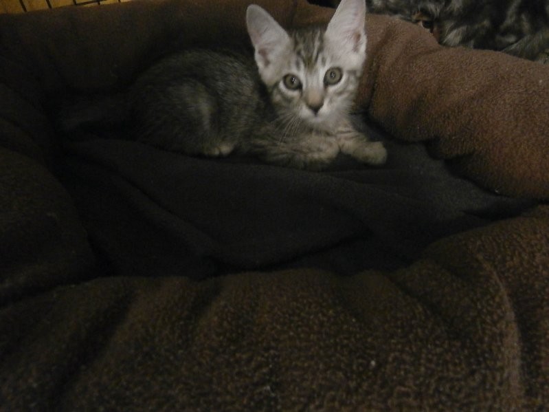 Hi my name is Smokey I came into the shelter with my 2 sisters and 3 brothers and am now looking for my new forever home. I am a sweet natured little kitten who loves to play with toys and my siblings but when I have finished play time I like to snuggle up to you for a cuddle. I come to you with my first vaccination desexed microchipped wormed flea treated and had a vet check with out friendly vets so all that is left to do is to take me home provide me with food water litter tray and all the love you can give. Hope to see you soon.Smokey xoxo