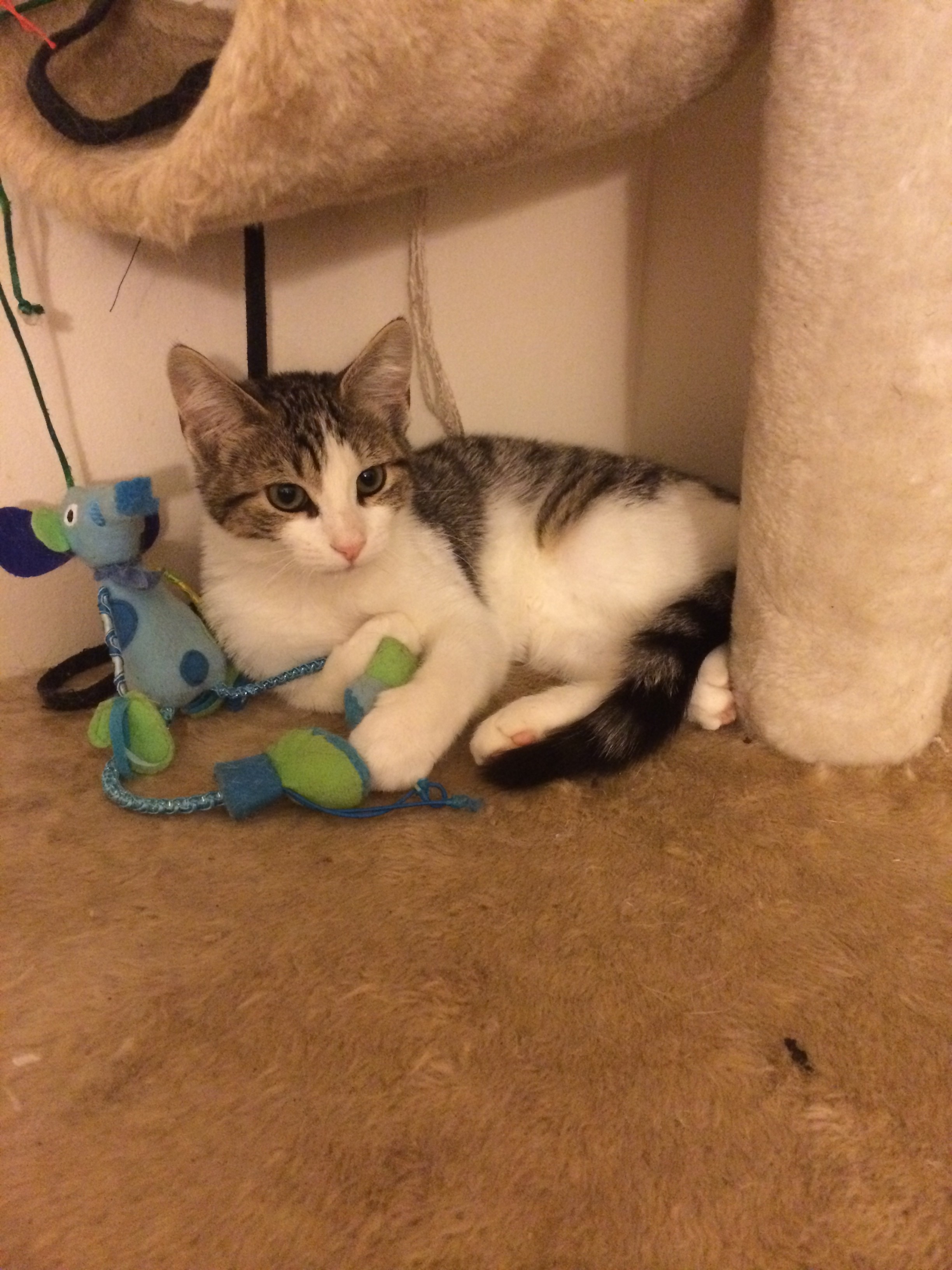 She loves to play with all the other kitties here and will also cuddle up on the sofa with you and lie on you in bed to give you goodnight kisses.