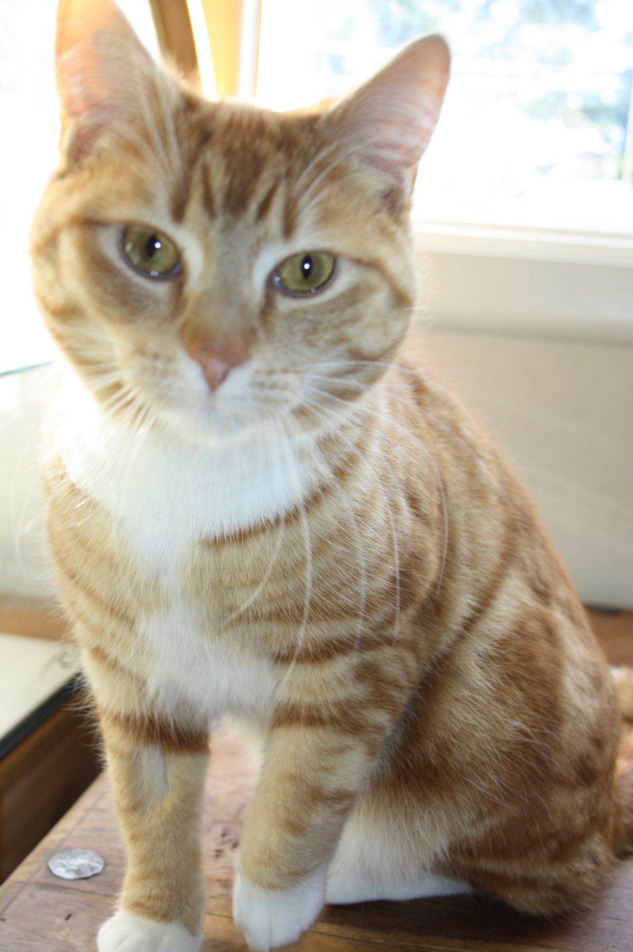 Donnie is one hell of a character. He is what I would call an 'odd ball' of a cat. He is a loner however likes to show who is boss with younger cats. He thinks he is the man. Affectionate to humans and loves to do press ups on your head before settling in to bed time. He can be frisky and wrestle with you but with no malice. Would suit a family with older children or a single person looking for a best mate. He loves going outside and chilling but does not wonder and is happy to come in when called.