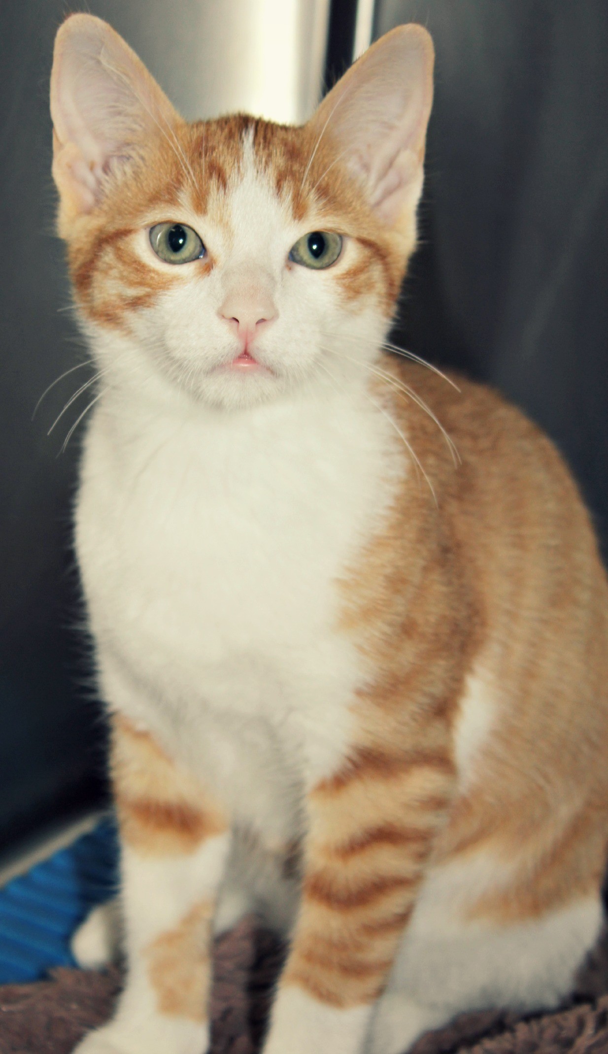 Chips is affectionate and loves to snuggle into your arms.