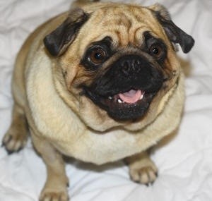 Fran is a big Pug with a big personality! Fran was an unclaimed stray from a local Sydney pound and is now in foster care with an ex-PAWS dog who is making her very welcome in his home. Not for the faint hearted, Fran will need an experienced Pug owner who will keep her on a strict diet to help her lose those extra kilos she is carrying around. Fran doesn't get on with other female dogs so her new home must have another submissive male dog for company as Fran is very bossy and likes to be the centre of attention. Fran is fully house trained and this big bundle of love is an inside dog so must have access to the house at all times. She will require regular brushing to minimise shedding of her thick coat as well as cleaning of her skin folds on a regular basis.
