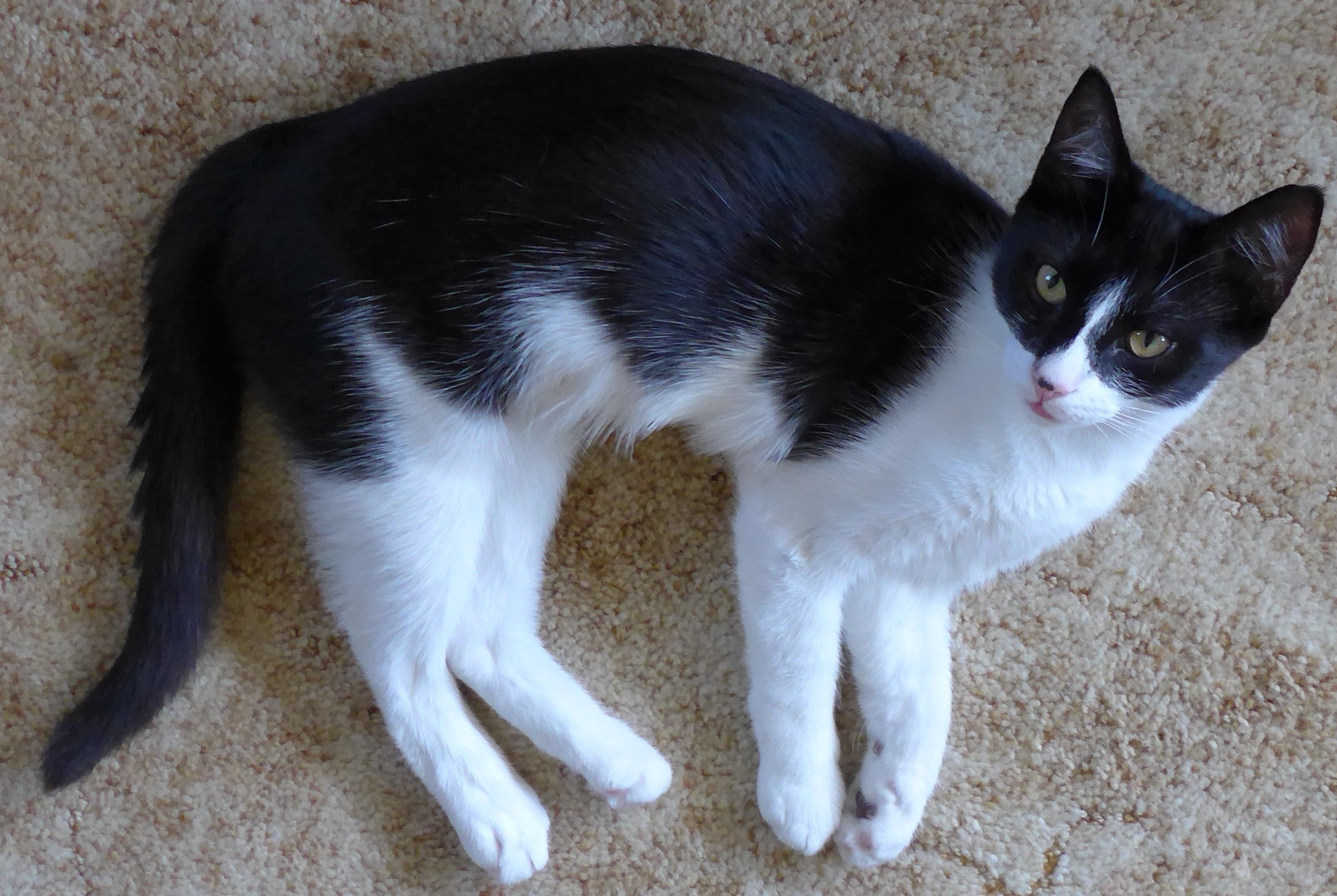 SYDNEY is a handsome black and white male kitten with gorgeous markings. He is very playful and loves to talk and tell you all his problems. He is happy to entertain himself but at the same time loves attention, enjoys a cuddle while sitting and relaxing with you. Sydney gets on great with other cats, not sure about dogs but I think he would adjust to anything new very quickly as his very easy going and patient.