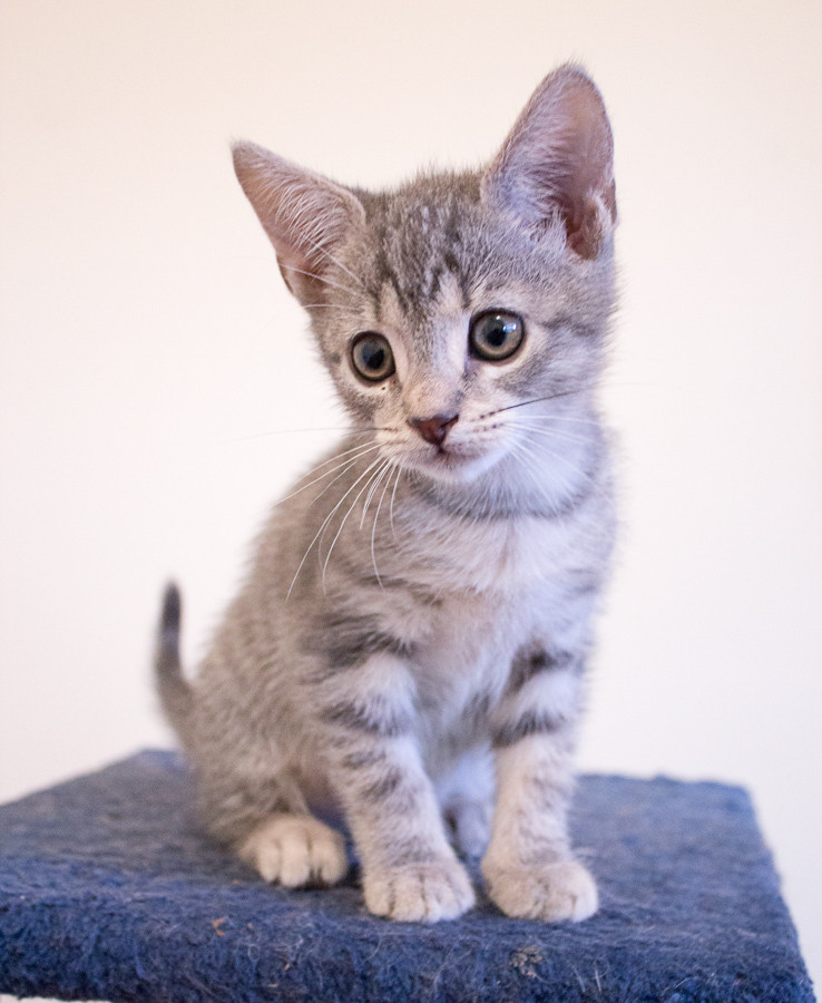 This silver/grey tabby was was born in care. Se gets along well with other cats & people. She is well socialised & fully litter trained.