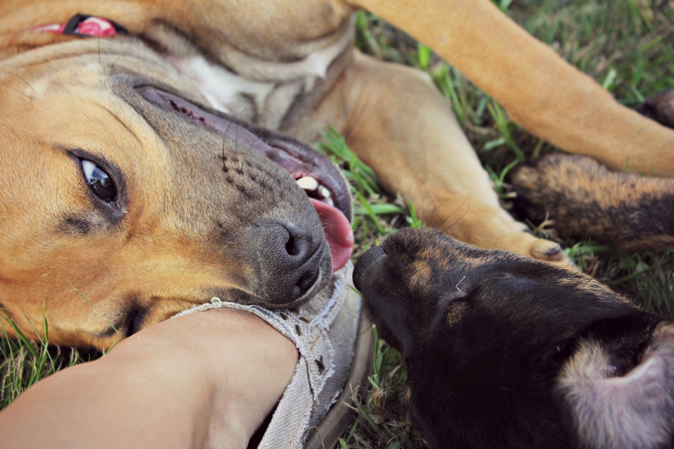 This happy boy is Rossco, he is a 6 month old American Staffy.