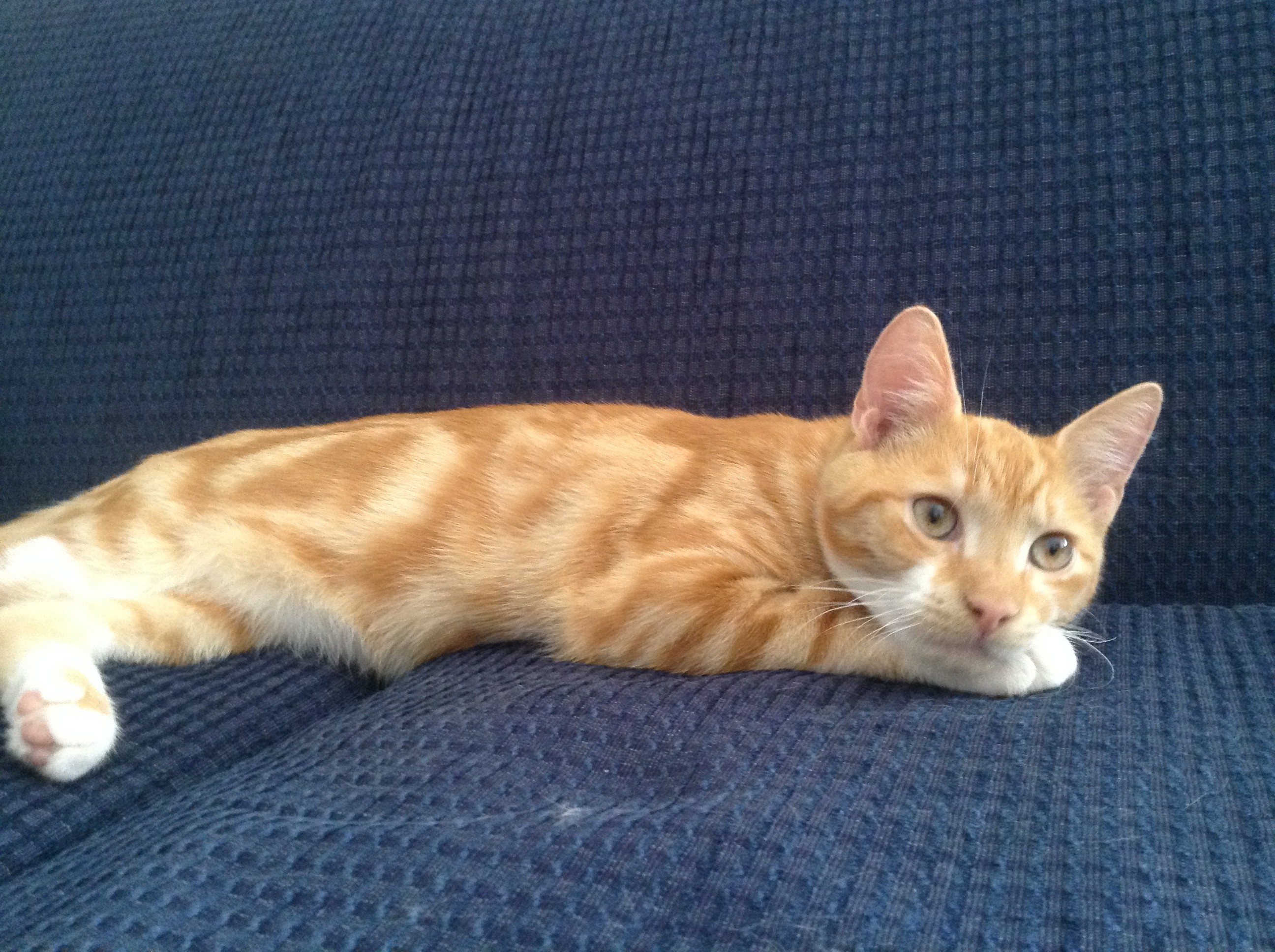 Alvin is a playful kitten who welcomes you as soon as you walk in the door. He will follow you until he gets a hello scratch or cuddle. He is currently living with four other foster cat siblings, two foster dog siblings and one foster bird sibling. He gets along with everyone and nothing phases him. He patiently waits until his human foster parents are out of the shower so he can go in and have a drink when they are finished. He will curl up on your lap at night time and loves to sleep on your bed at night. He is a gorgeous laid back little boy who would easily fit into any family situation.