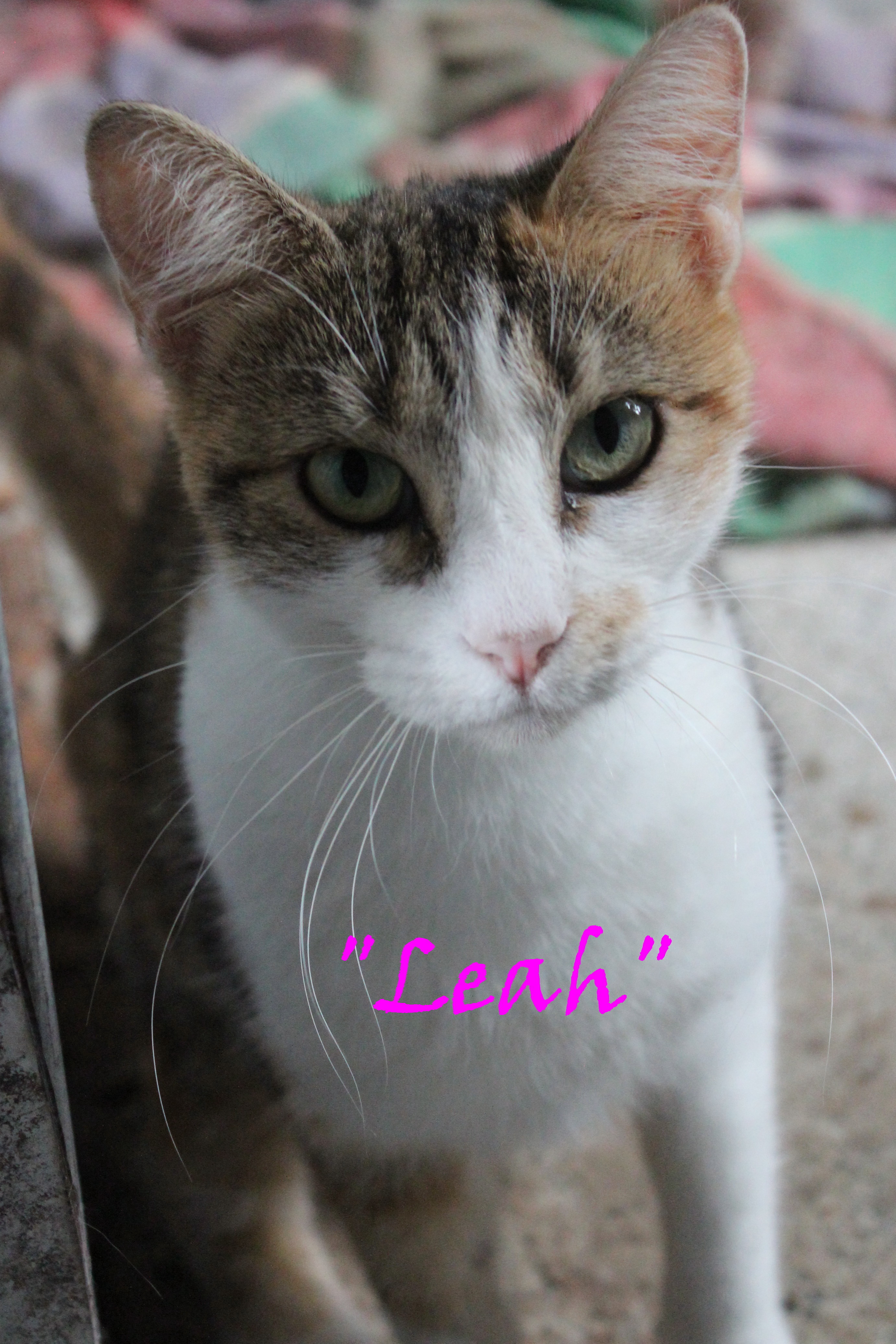 Leah has a wonderful personality. Great with other cats and will more than likely adjust to being around a dog.
