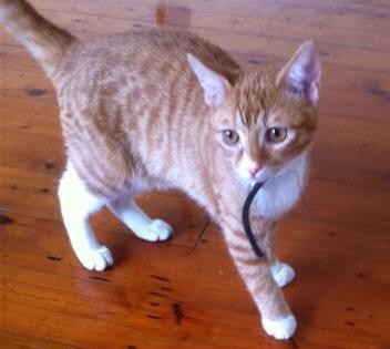 Ginger Ninja is a lovely ginger boy with white socks looking for a family! He's very cheeky and playful, loves his food and is inquisitive and bold. He is vaccinated, microchipped, desexed and up to date with flea and worming treatments. Please contact us if you would like to meet him. (He is the ginger kitten in the picture! Other cat is his mum Quentin)