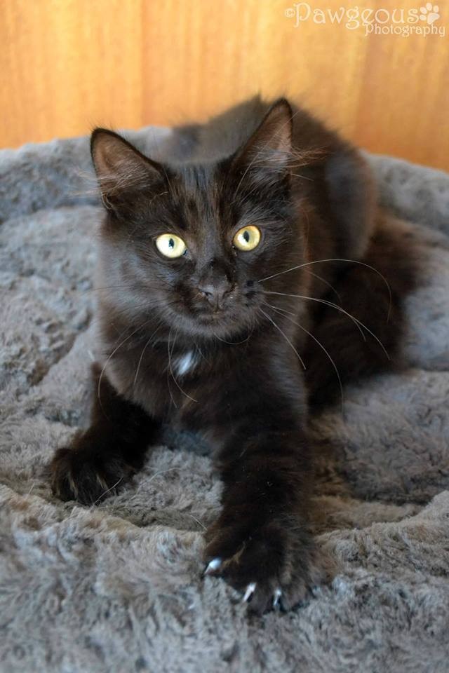 Alex is a gorgeous boy with long black fur and big yellow eyes!