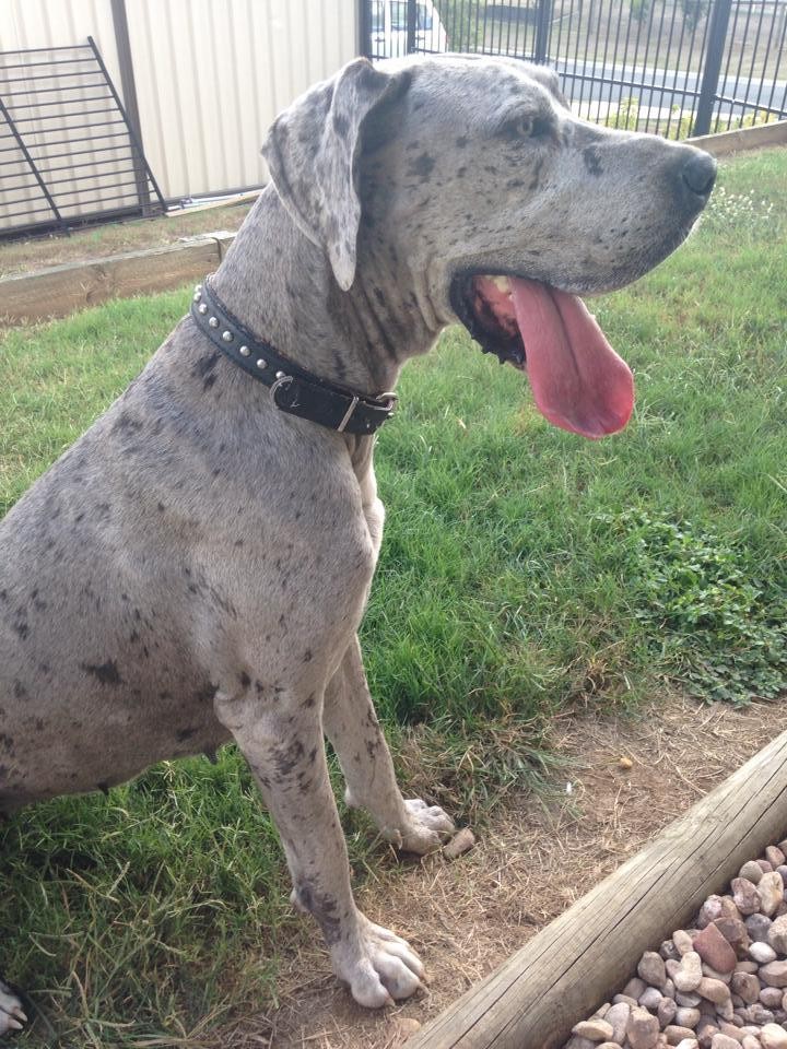 She has been used to being outside, however is loving being inside/outside in her current foster home. Chevelle is currently housed with 3 other large breed dogs and is playing lovely. She has not been exposed to small dogs or cats, so we are unsure how she you interact with these.