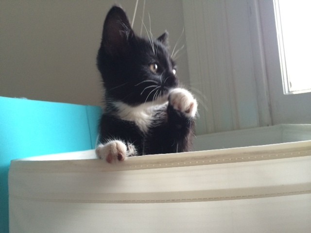 Scout is the brightest, friendliest kitten. She loves to play, be cuddled and patted and just generally be around you. She even falls asleep on your feet when you're standing up! She's confident, well-adjusted and manages to live in a house with two dogs, three people and another kitten with absolute ease. She's adorable and truly loves human company. "