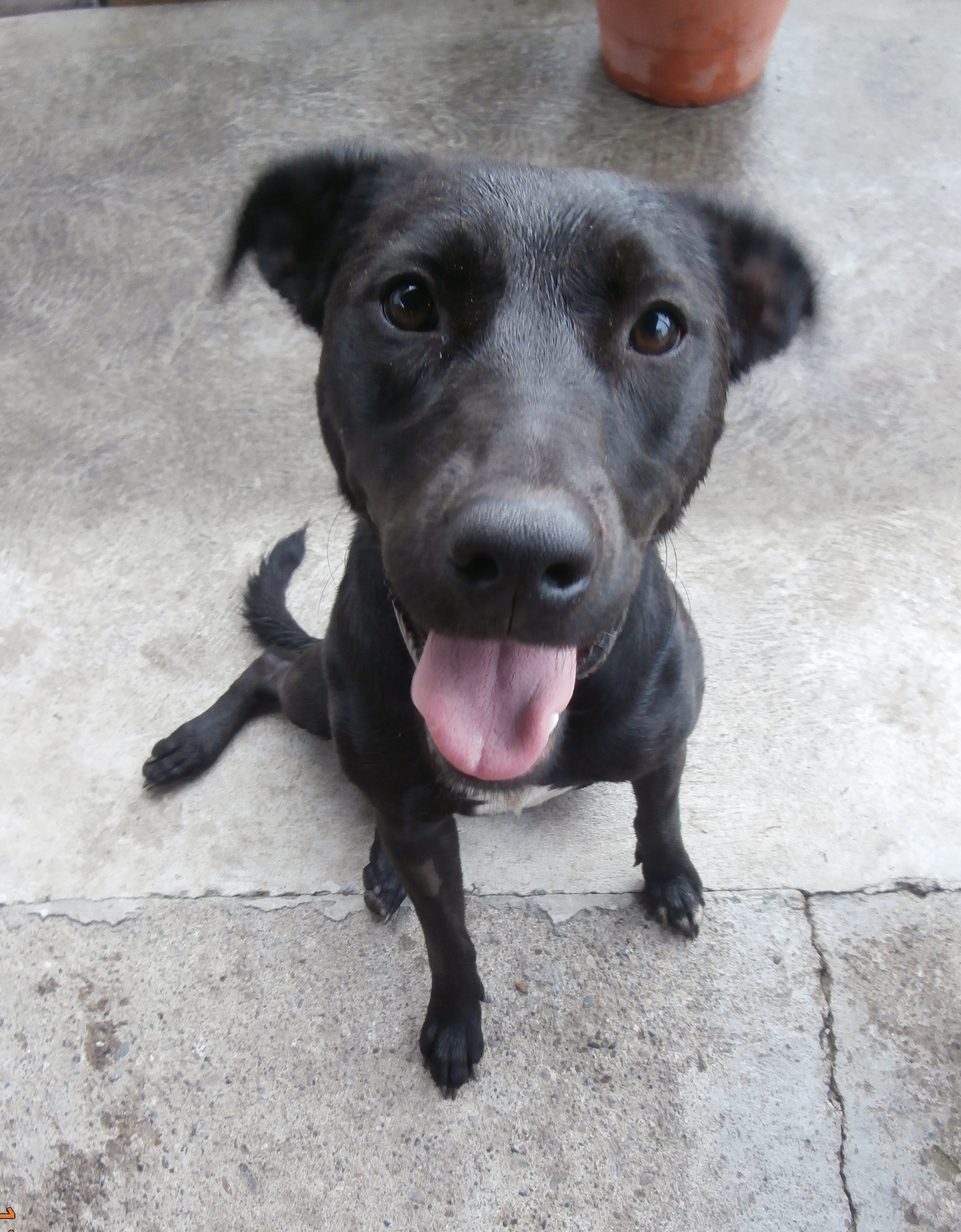 Sally is a female, black Kelpie, approximately 18 months old. She is a very happy, friendly and energetic girl and gets along well with other dogs.