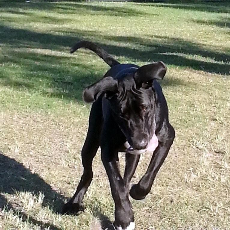 Kaiser is a very big boy, however don't let his size fool you, he wants more than anything to please his human. He has had some basic training and knows how to sit and stay, although he would benefit from ongoing as he does get overexcited at times. We would prefer someone who has had experience with great danes or other large breeds.