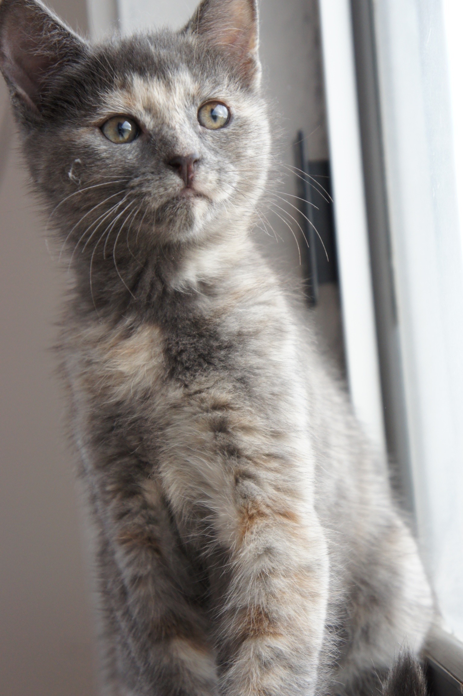Bleu is an absolute sweetheart of a kitten. After her bursts of kitten playfulness she seeks out the nearest human to snuggle on their lap. She is very energetic and playful. She is never too far away and comes when you call her name, she's even plays fetch! She loves dogs and would be happy in a home with them but would be better without other cats. As long as there is a warm lap she would also be happy in a home on her own. We would love to see this snuggly gorgeous girl get her perfect furever home.