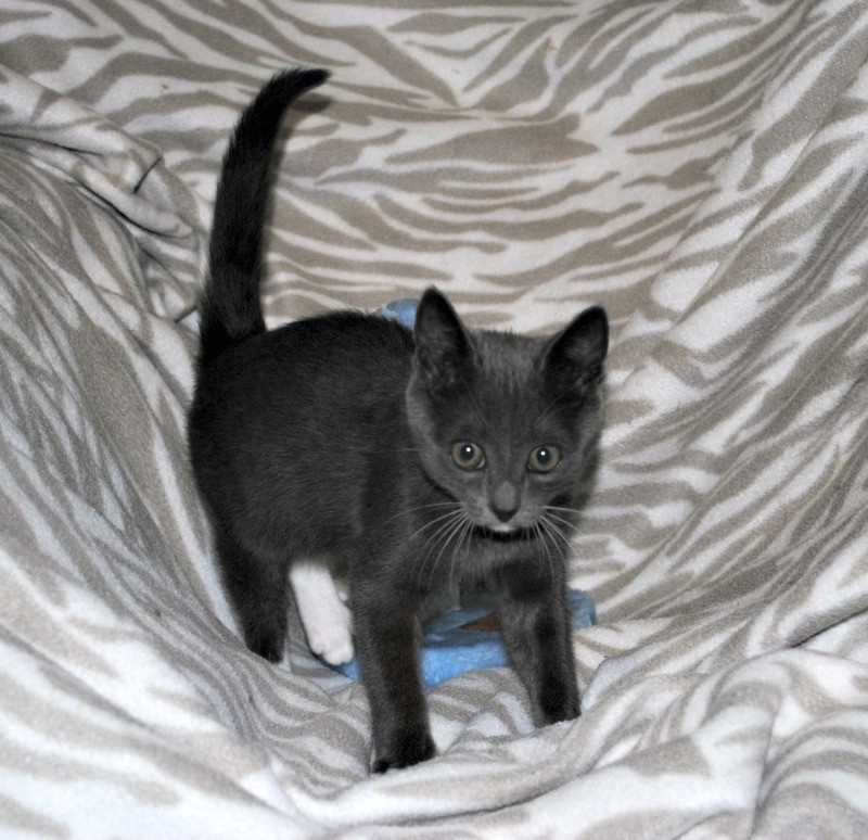 Theon’s charcoal coat is smooth and glossy and his eyes reflect his intelligence and never-ending curiosity. It would be no surprise if the dabs of white you see on his paws and chin came from sticking his nose in to investigate something that was none of his business.