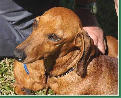 Their tails are now wagging and they're an affectionate pair who love their cuddles on your lap. They get very excited at being taken for walks and out on car trips and when it's dinner time they start the happy dachshund dance until dinner is served.