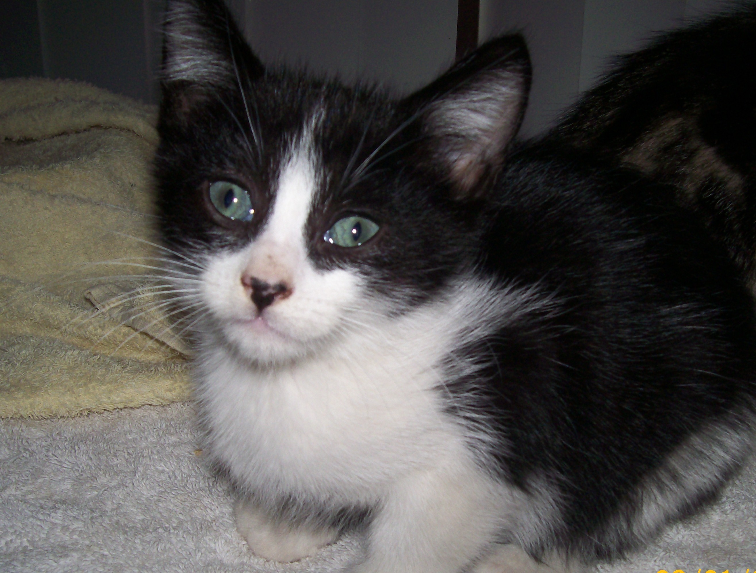 Buster is a real little character of a kitten. Loves to chat, have a play and check out what the big cats are doing. Can also be a quiet little thing and he loves his patts and is quite affectionate. He was rescued along with his brothers and sister (pictured, and also available for adoption) and was a bit shy at first but has totally blossomed into a real little cuteypie.