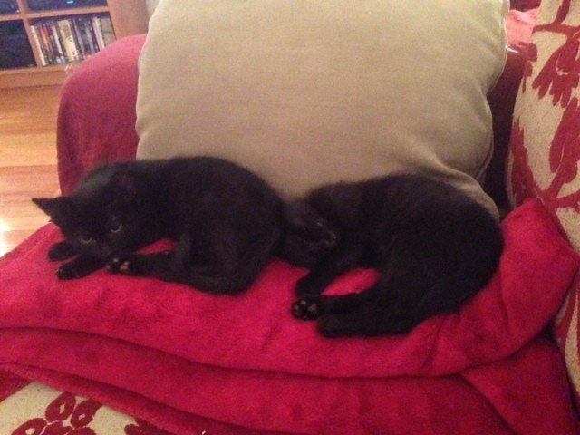 When he’s off, he loves to curl into a human’s arms, with his sister, and quietly purr until he falls asleep. He does love a bit of attention!