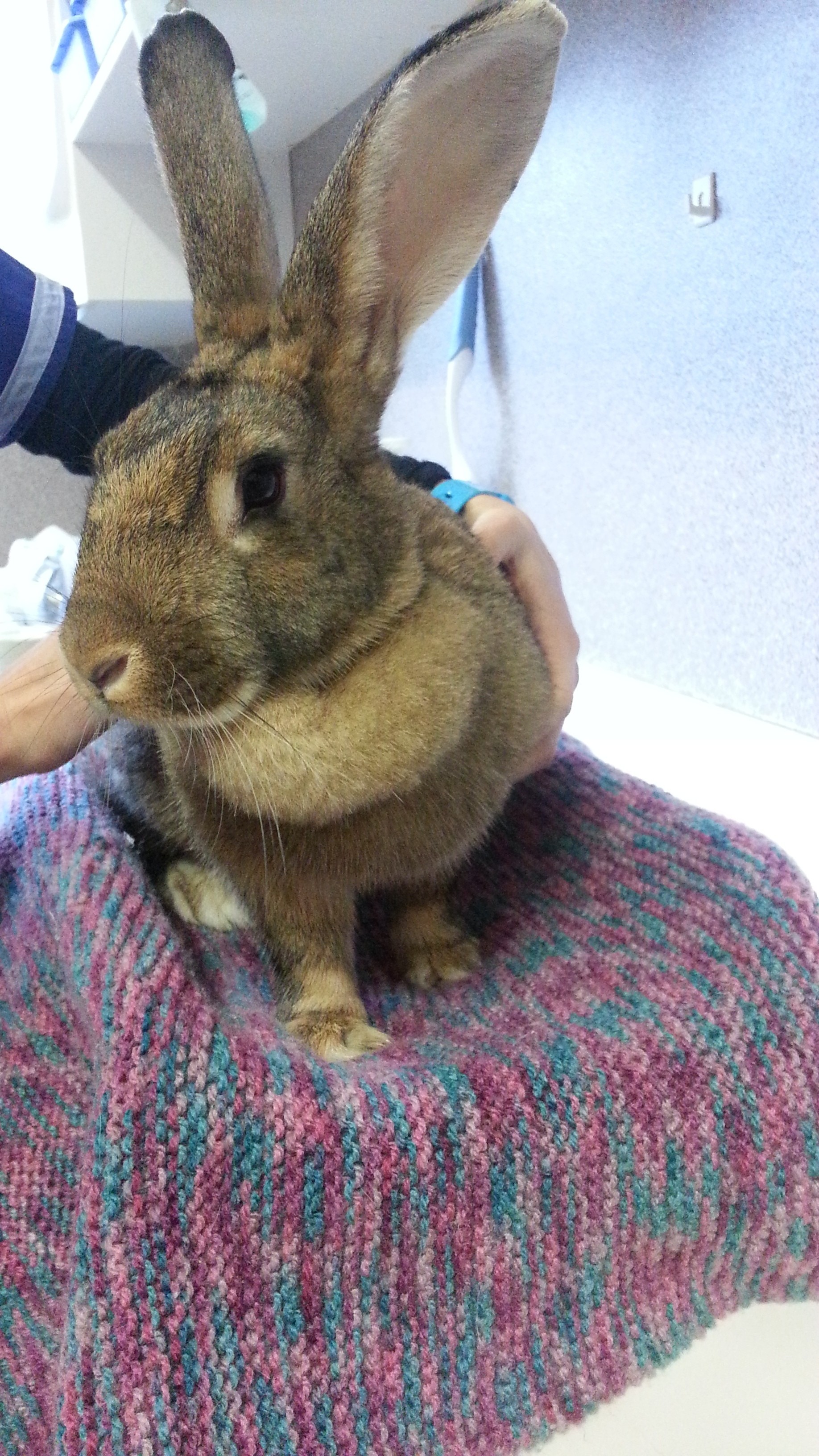 I was found and handed into the veterinary clinic so that I can find a home. I'm a very curious rabbit and like to hop around finding new places. I don't mind cuddles and strokes, and I love carrots! I'm not yet litter trained but I'm trying.