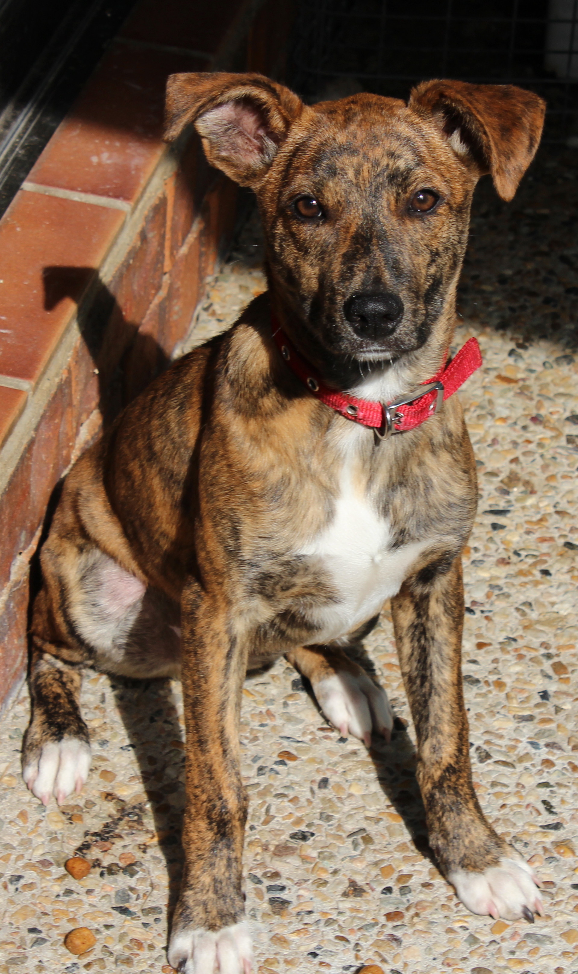 He came to the rescue with his mum who was a little staffy x (cross with something small like a fox terrier or such) so Tyrone has been marked as that breed.