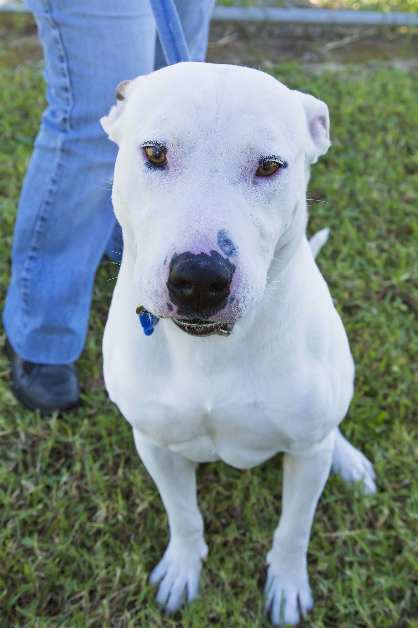 Meet Ice! A very gentle and friendly Bull Terrier Cross. Ice would love an active family to call his own. He would love to go on daily walks and have plenty of play time at home as well.Ice will require some lead training or a halti as he can sometimes pull on his lead in excitement. He is very easy-going and will fit into a home with pocket pets cats other dogs and kids of all ages.He would need to meet your family dog before adoption to ensure they can be friends.His coat is only short so will require a quick daily brush and the occasional bath to keep him glowing and radiant. A yard with 5 ft fencing will be perfect to keep Ice safe and secure.Ice will bring his new family years of joy happiness and love!