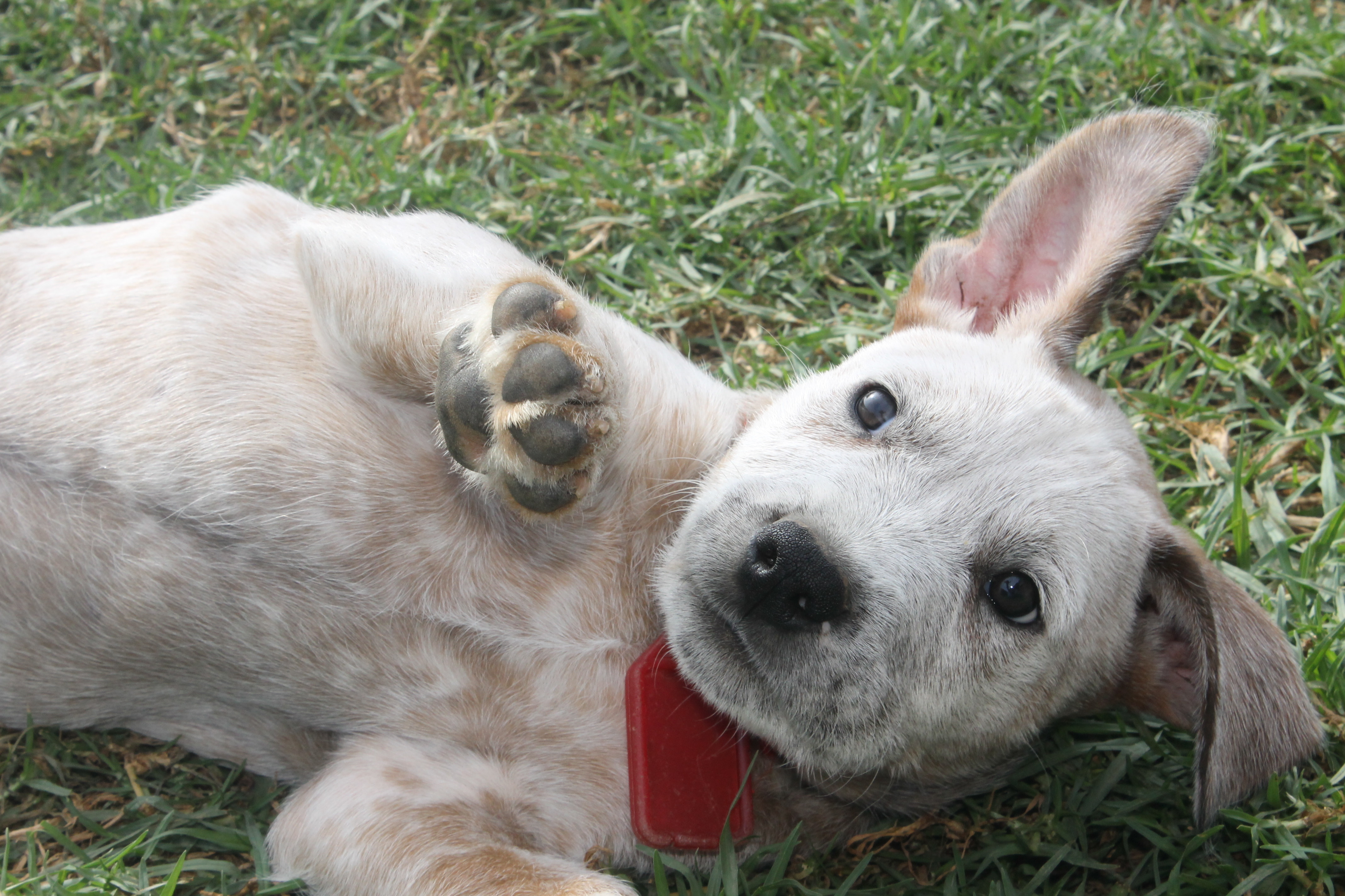 He was born in our care, after we rescued his pregnant mother out of a local Sydney pound. His mother is a little English Staffy and from the looks of the pups we are pretty sure dad was a cattle dog.
