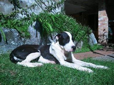 Chipsie is a 10 month old black and white female, Dane/Bull Arab/Mastiff mix.